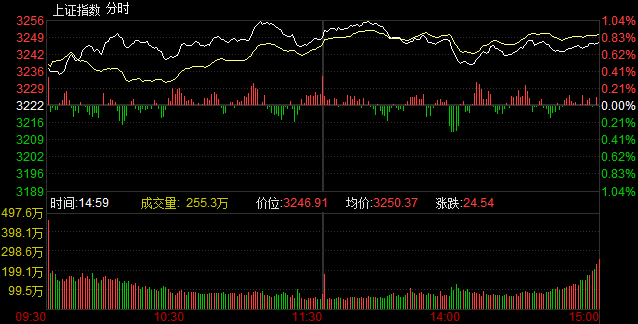 央廣網財經2月17日消息,據經濟之聲《交易實況》報道,兩市開盤小幅高開,隨后震蕩上升,滬指七連陽收官,滬指報3246.91點,上漲24.54點,漲幅0.76%,成交2633億元;深成指報11718.5點,上漲123.31點,漲幅1.06%,成交2494億元;創業板指報1894.31點,下跌2.32點,跌幅0.12%,成交549.3億元。