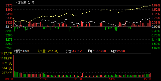 央廣網財經北京3月2日消息 據經濟之聲《交易實況》報道,受上周央行降息和柴靜霧霾紀錄片的影響,兩市今天高開高走,午后震蕩走高,截至收盤,滬指報3336.28點,上漲25.98點,漲幅0.78%,成交4103億元;深成指報11884.0點,上漲126.33點,漲幅1.07%,成交3876億元;創業板指報1986.99點,上漲58.94點,漲幅3.06%,成交850.7億元。
