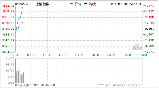 央廣網(wǎng)北京7月10日消息 據(jù)經(jīng)濟(jì)之聲《交易實(shí)況》報(bào)道,周五早盤滬指低開高走,大幅拉升,截止發(fā)稿,報(bào)3786點(diǎn),漲76點(diǎn),漲幅2.13%。
