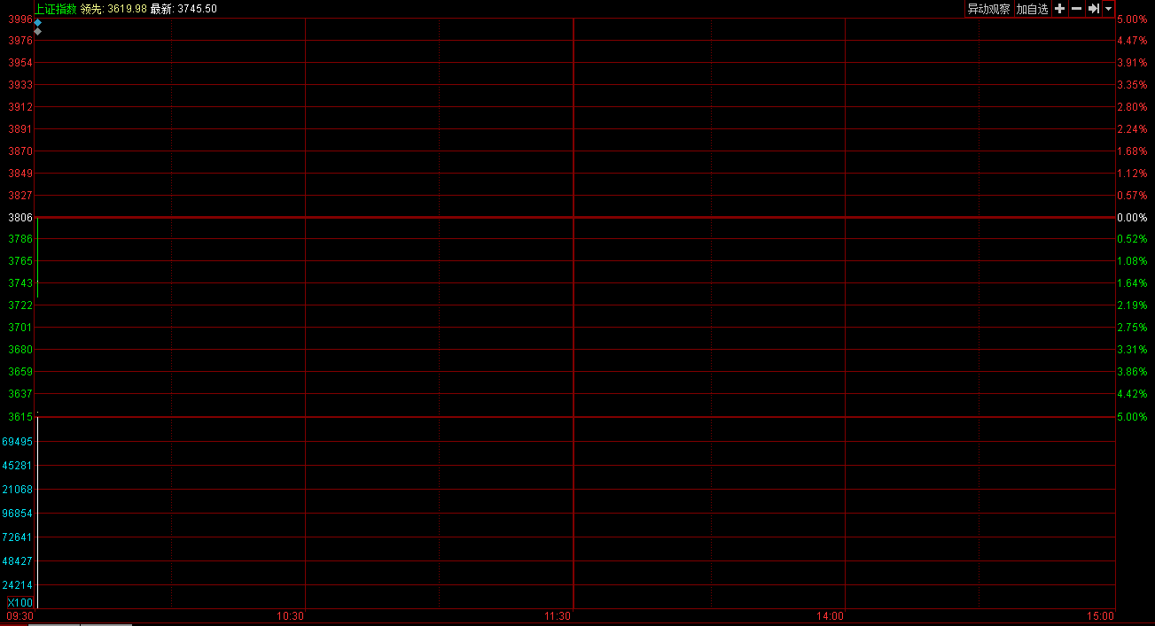 央廣網北京7月16日消息 據經濟之聲《交易實況》報道,今日早盤,兩市雙雙低開,滬指跌1.24%,截止開盤,滬指報3758.50點,跌47.20點,跌幅1.24%,成交260億,深成指報11963.35點,跌169.07點,漲幅1.39%,成交283億,創業板報2526.65點,跌63.38點,跌幅2.45%。