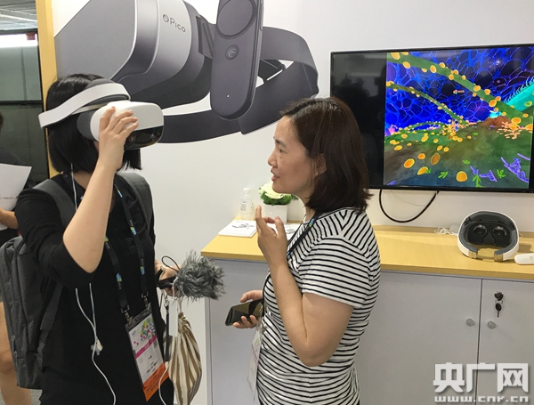 另外,在教育領域,VR設備也開始投入應用。在北京小鳥看看科技有限公司的展區,記者體驗了一款頭戴式VR一體機,這款設備可以結合生物學教學方案,呈現細菌的形態并講解相關知識。小鳥看看科技有限公司副總裁祖昆侖介紹,VR設備提升了教學手段的豐富性和趣味性。傳統的教學可能只能展示圖片,但在VR設備里,學生可以非常直觀地看到細菌的形狀,在看到細菌同時,它還會告訴學生該細菌的作用。祖昆侖說,除了生物方面的VR產品,他們還做過帶有化學、地理、英語等學科內容的VR產品。