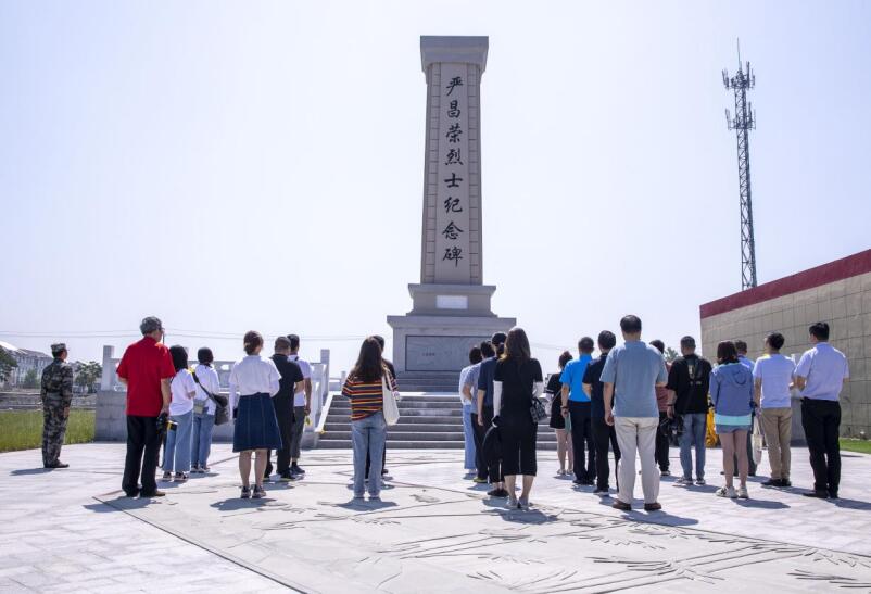 此行首站來到了興化市昌榮鎮嚴昌榮烈士紀念碑前,大家懷著十分崇敬的心情,向烈士紀念碑敬獻花籃和鮮花,行三鞠躬禮,表達對革命先烈的無限緬懷和哀思。