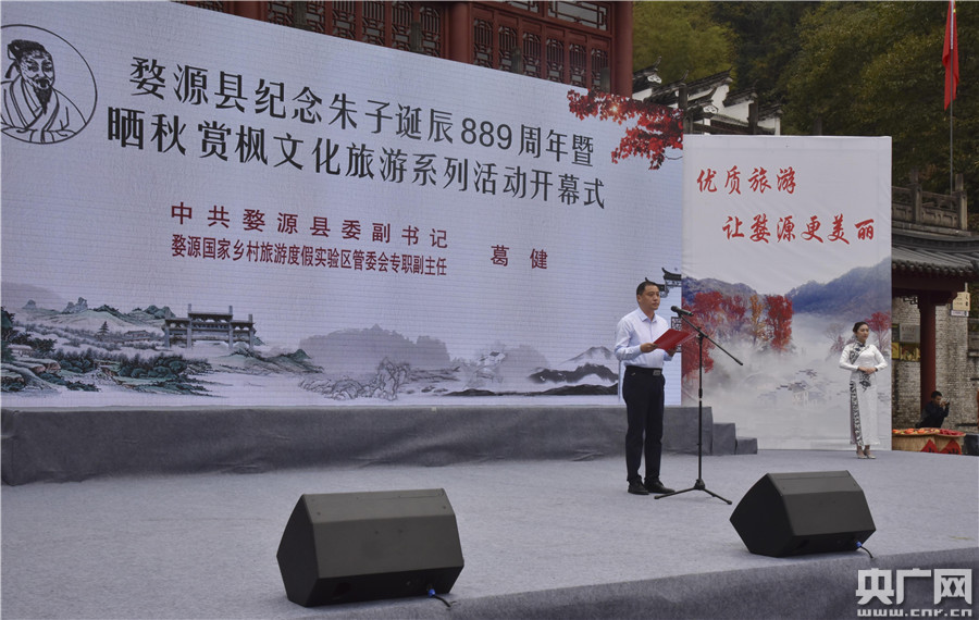 婺源縣委副書記、婺源國家鄉(xiāng)村旅游度假實驗區(qū)管委會專職副主任葛健宣布紀念朱子誕辰889周年暨曬秋賞楓文化旅游系列活動主要活動內(nèi)容