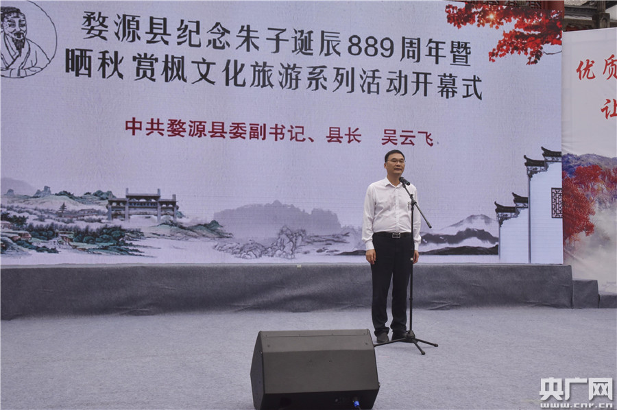 婺源縣委副書記、縣長吳云飛宣布婺源縣紀念朱子誕辰889周年暨曬秋賞楓文化旅游系列活動開幕
