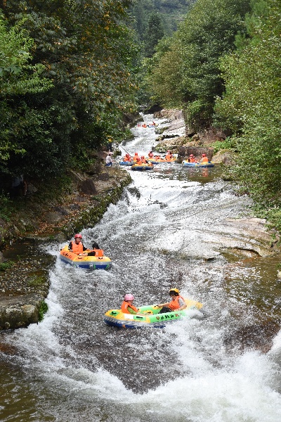 近日,江西多地持續(xù)高溫,位于婺源縣的五龍源極限漂流景區(qū)迎來旅游高峰,眾多游客前來體驗親水漂流項目,樂享夏日清涼。(通訊員 詹衛(wèi)華)