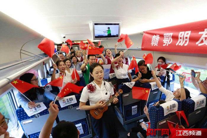 瑞昌剪紙藝術家在武九高鐵上表演剪紙