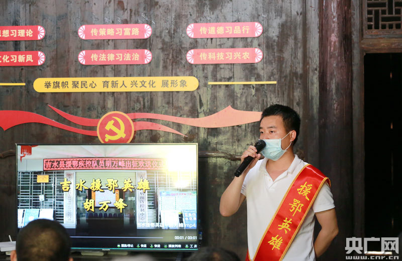 吉水首個援鄂抗疫英雄胡萬峰講述自己親身經歷的武漢抗疫故事(央廣網發 通訊員廖敏 攝)
