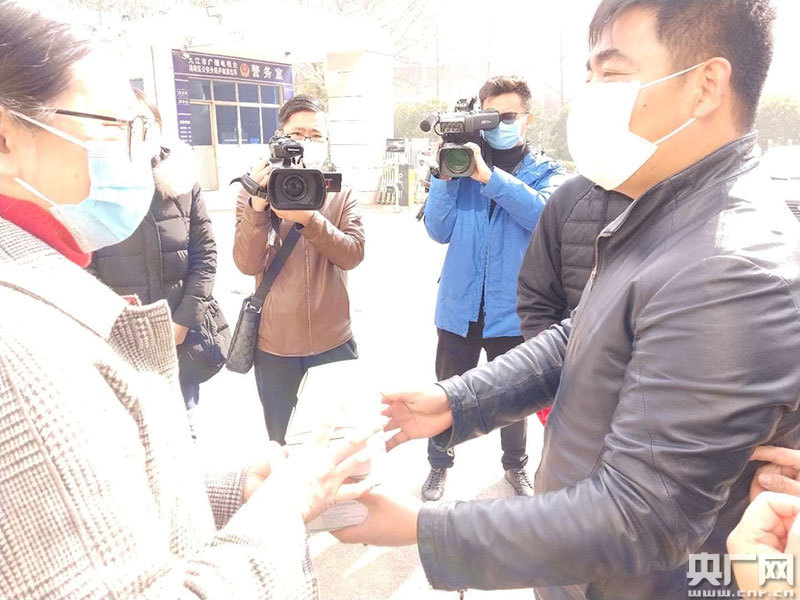 九江日報社記者童輝:“說實話在這種時候,他們還會來到我們新聞單位來進行慰問,首先我們非常感謝,因為疫情這么嚴重我們很多記者也在一線、也很辛苦,他們這次慰問品對我們來說提供很及時,很暖心,非常感謝他們,新聞工作者也會在這次疫情防疫中把自己本職工作做好”。