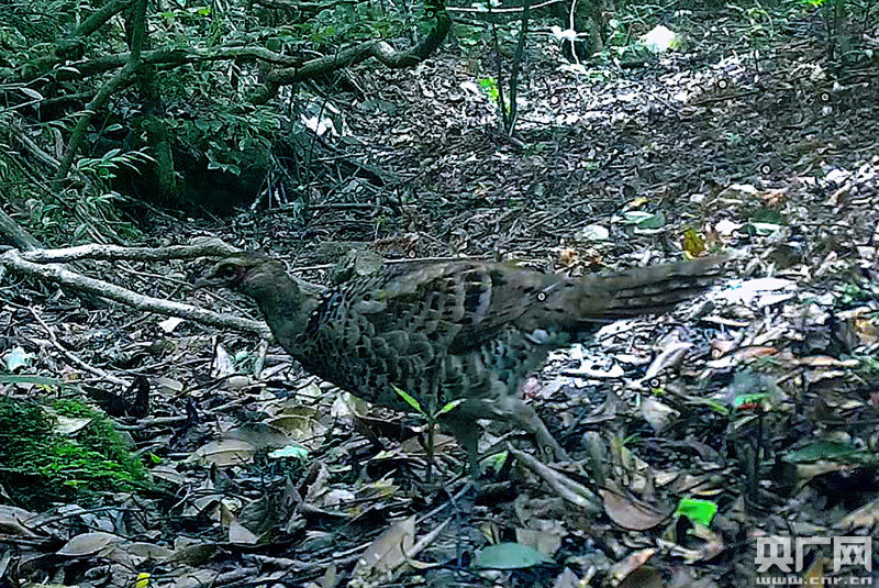 紅外相機拍攝到的雌性白頸長尾雉(央廣網發 九嶺山國家級自然保護區 提供)