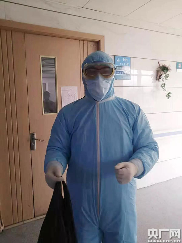 自疫情防治工作開展以來,黃偉和所有隔離病房的醫護人員一樣,對自己進行了自我隔離。家人牽掛不已,偷偷前往送飯及生活用品,黃偉發現后,立即大喊:“別靠近,放那里,我待會兒來拿!”