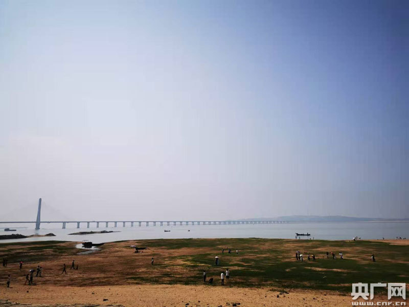 鄱陽湖都昌老爺廟水域水位大面積下降(央廣網發 通訊員付文龍 攝)