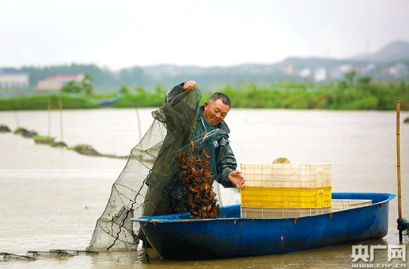 江西省吉安市吉水縣醪橋鎮元石村稻蝦共作基地,村民正在起籠收獲小龍蝦