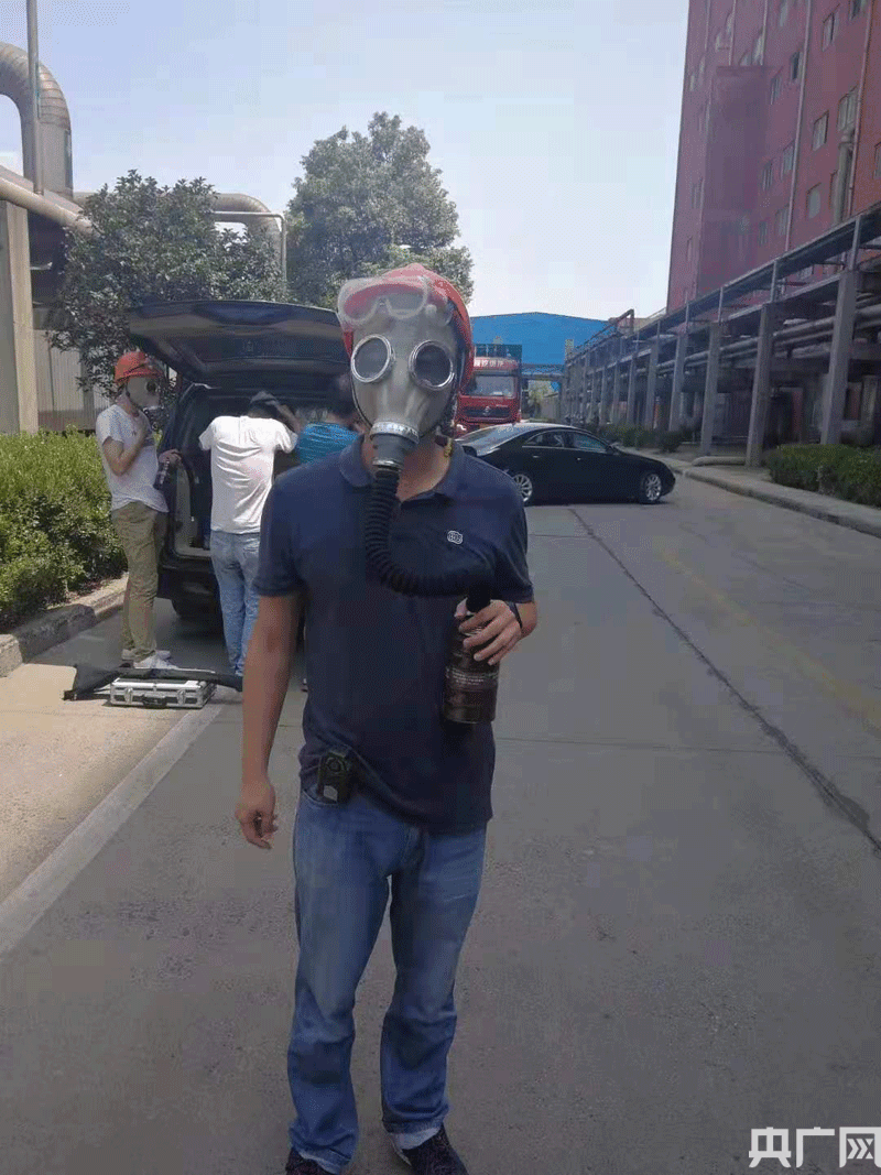 化工廠事故有害氣體泄漏彌漫,調(diào)查人員帶著防毒面罩進(jìn)行采樣。(央廣網(wǎng)發(fā) 江西省應(yīng)急管理廳提供)