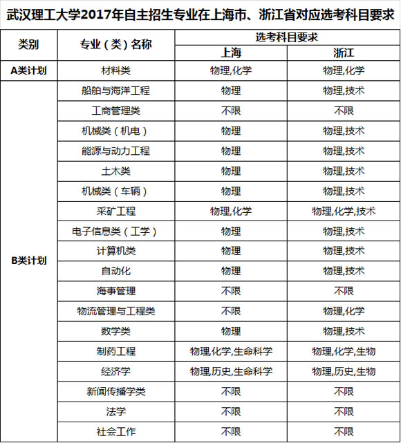上海市、浙江省考生選考科目應和我校公布的2017年同類專業(類)選考科目范圍相同,具體選考科目要求見附件一。