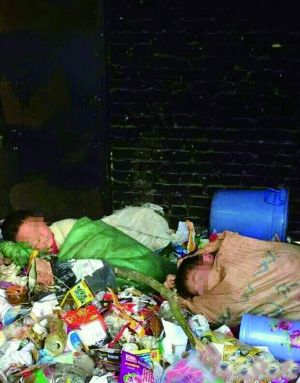 兩名小學生睡在垃圾房