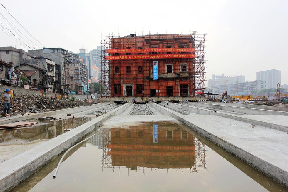 >>下一圖集圖集詳情:2016年4月27日消息,湖北武漢。具有百年歷史的"漢口義勇消防聯合會舊址"樓日前啟動整體平移。整棟建筑首日平移4.5米,此后還將以每天10小時平移約7米的速度,整體東移70米。