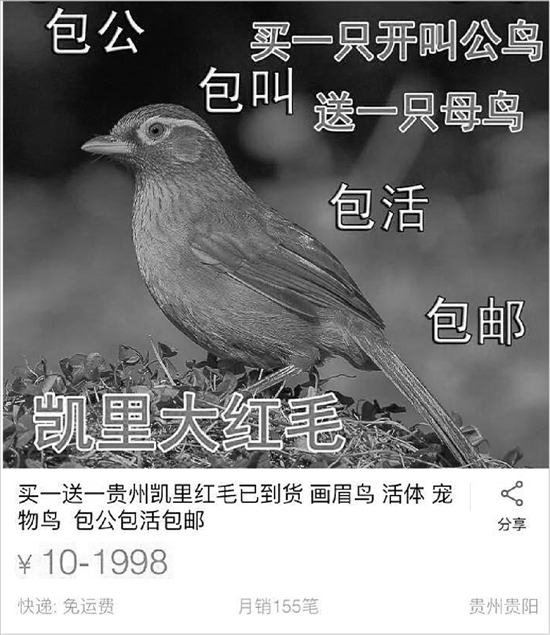 發(fā)現(xiàn)淘寶上有兜售野鳥