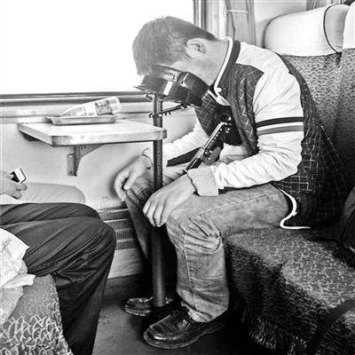 北青報(bào)記者發(fā)現(xiàn),今年還有不少融合了電子產(chǎn)品的升級(jí)版神器。一款被叫做“春運(yùn)睡眠神器”的裝備就很熱銷,它把靠枕、眼罩和耳機(jī)融為一體,在喧囂的火車上,把它戴在頭上就可以安靜、舒服地睡覺。