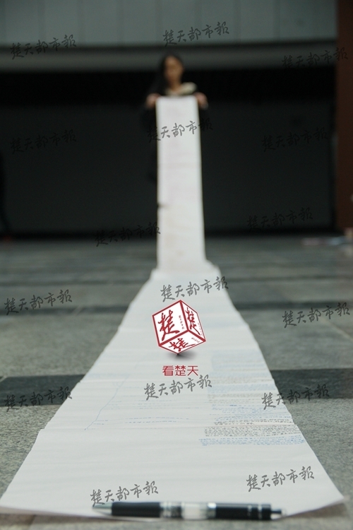 12月份的四六級考試剛剛結(jié)束,考研便緊隨其后。對此,位于武漢的文華學(xué)院的考研學(xué)子們也緊鑼密鼓地為考研做最后的沖刺。在圖書館大廳內(nèi),一幅長達七米、由筆記做成的卷軸引起了不少人的關(guān)注。