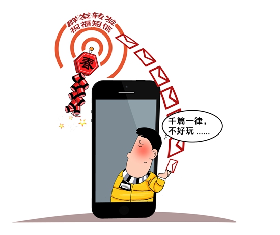 北京某高校研究生羅充(化名)非常反感“群發(fā)祝福”,“我自己絕對不會發(fā),收到了別人發(fā)的,也會感覺別扭,這個人的形象甚至會大大減分”。