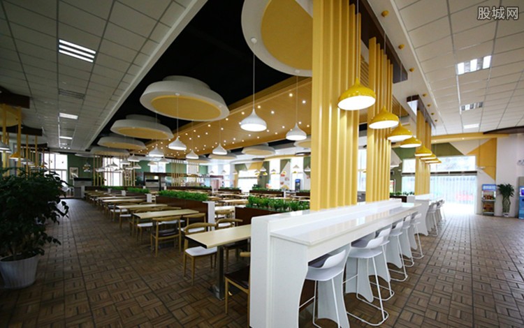 據悉,食堂內部全場以暖色調為主,搭配有墨綠色、白色的桌子和凳子,橘色和白色的吊燈,更有鏤空設計的凳子,文藝且不失藝術感。
