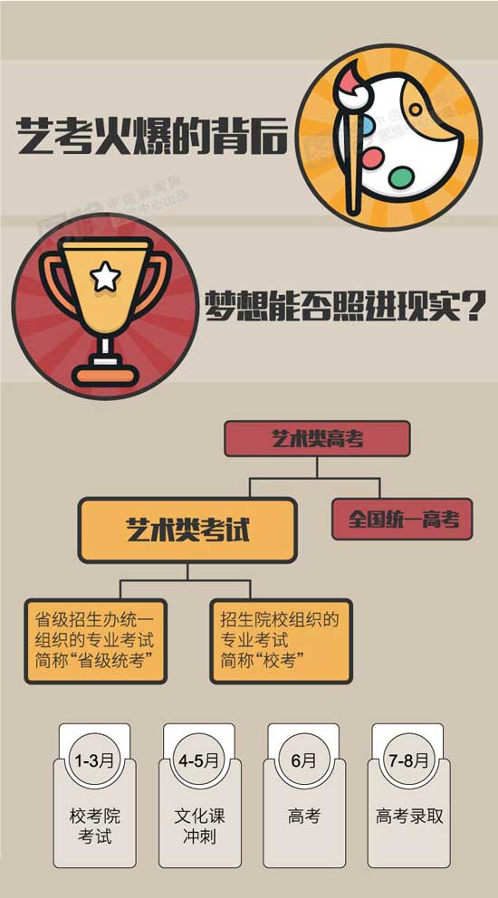 春節剛過,各藝術院校的藝術類考試已經陸續拉開帷幕。和往年一樣,“藝考”這個詞匯再度成為社會關注的最大熱點之一。今年藝考依舊“熱度不減”,競爭似乎比往年更激烈。據記者了解,今年全國共有約6.5萬人次報考中國美術學院,比去年增加了近萬人,北京電影學院總報考38144人次,更創歷史新高。