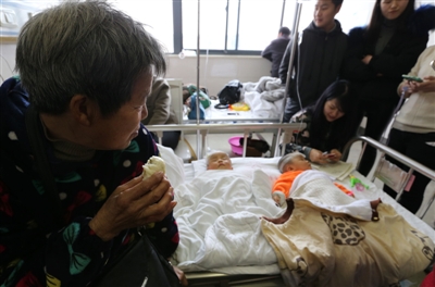 朋友圈刷屏 70歲老人獨自帶雙胞胎曾孫住院