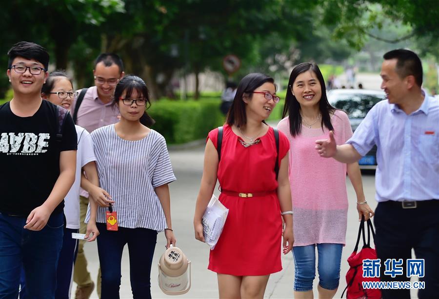 6月6日,福建莆田第二中學的高考考生跟老師(右一)交流,以輕松心態迎接高考。當日,記者從教育部獲悉,2017年全國統一高考將于6月7日至8日進行,部分省(區、市)由于考試科目設置不同,9日仍安排有考試科目。今年全國高考報名考生共940萬人。新華社記者 魏培全 攝 -