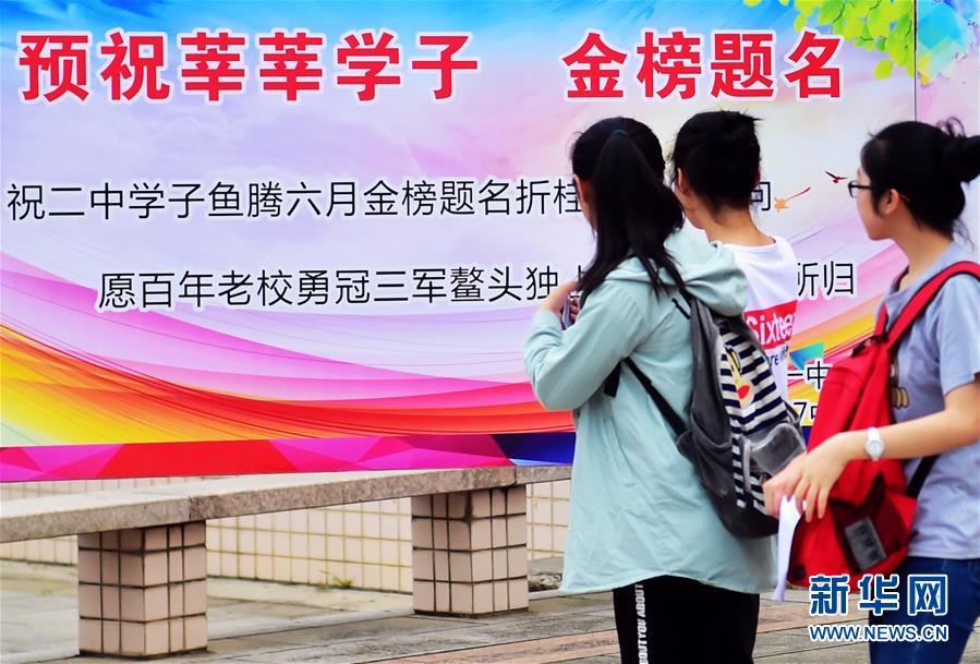 6月6日,福建莆田第二中學的高考考生在閱讀學校送出的高考祝愿。當日,記者從教育部獲悉,2017年全國統一高考將于6月7日至8日進行,部分省(區、市)由于考試科目設置不同,9日仍安排有考試科目。今年全國高考報名考生共940萬人。新華社記者 魏培全 攝 -
