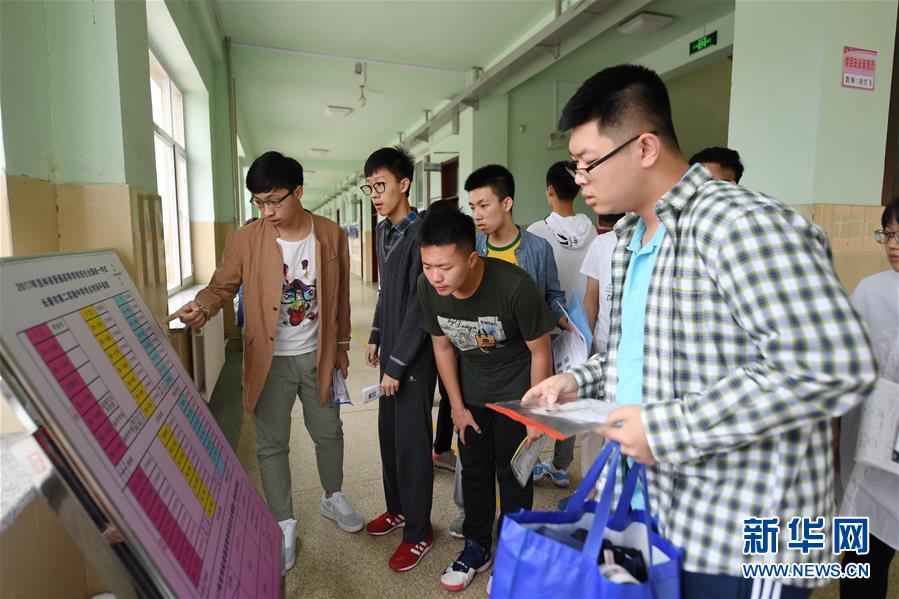 6月6日,考生在吉林長春第二實驗中學考點查看考場分布。當日,記者從教育部獲悉,2017年全國統一高考將于6月7日至8日進行,部分省(區、市)由于考試科目設置不同,9日仍安排有考試科目。今年全國高考報名考生共940萬人。新華社記者 張楠 攝 -