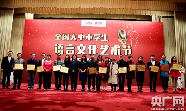 2017年12月10日,中央人民廣播電臺(tái)央廣網(wǎng)隆重舉行了第一屆“全國(guó)大中小學(xué)生語言文化藝術(shù)節(jié)”頒獎(jiǎng)盛典,在人民大會(huì)堂這個(gè)極具歷史意義的地方見證了獲獎(jiǎng)?wù)邆兊臉s譽(yù)。