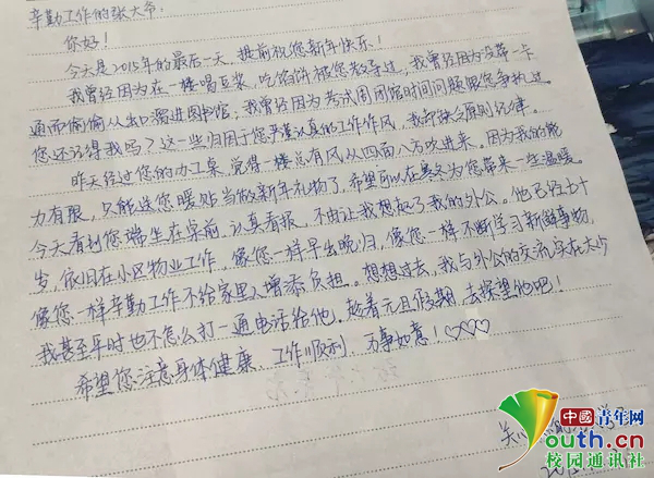 學(xué)生寫給張景海的信。中國青年網(wǎng)通訊員 劉積舜 攝