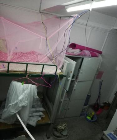 宿舍每4人一間,有獨立衛(wèi)生間,但衛(wèi)生間沒有窗戶和排氣扇,常有嚴(yán)重異味,還時常有小蟲子出沒。