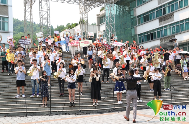 4月27日,四川農業大學團委主辦,大學生藝術團電聲樂團、管樂團、民樂團和演唱團承辦的“新長征路上的搖滾”快閃活動舉行,超燃的樂隊,悅耳的歌聲,恢弘的管樂,曼妙的舞姿和清新的民樂先后演繹,藝術表演交織、交融,對國家的深情貫穿始末。三百余名同學駐足參與,他們揮舞著現場的國旗,舉起愛國標語,詮釋著川農學子的愛國情懷,向百年前的五四先驅致敬,向繁榮昌盛的偉大祖國點贊。