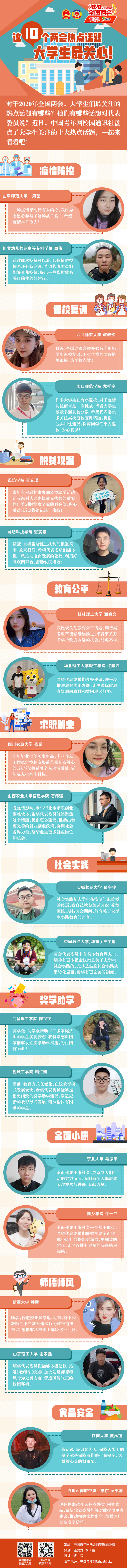 中國青年網北京5月21日電 對于2020年全國兩會,大學生們最關注的熱點話題有哪些?他們有哪些話想對代表委員說?近日,中國青年網校園通訊社盤點了大學生關注的十大熱點話題,一起來看看吧!