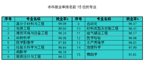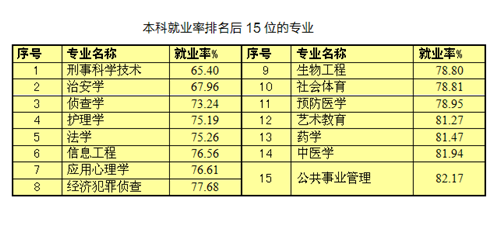 本科就業率前15和后15。
