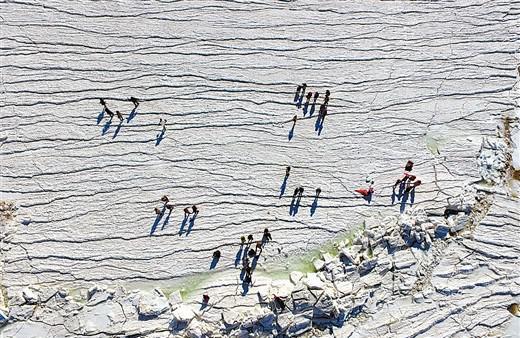 昨日氣溫驟降,渤海大連北部海域海冰厚度增加,吸引市民和游客來到夏家河子海域觀賞極地冰原景觀并游玩。提醒市民和游客一定要注意安全。(記者 呂文正)