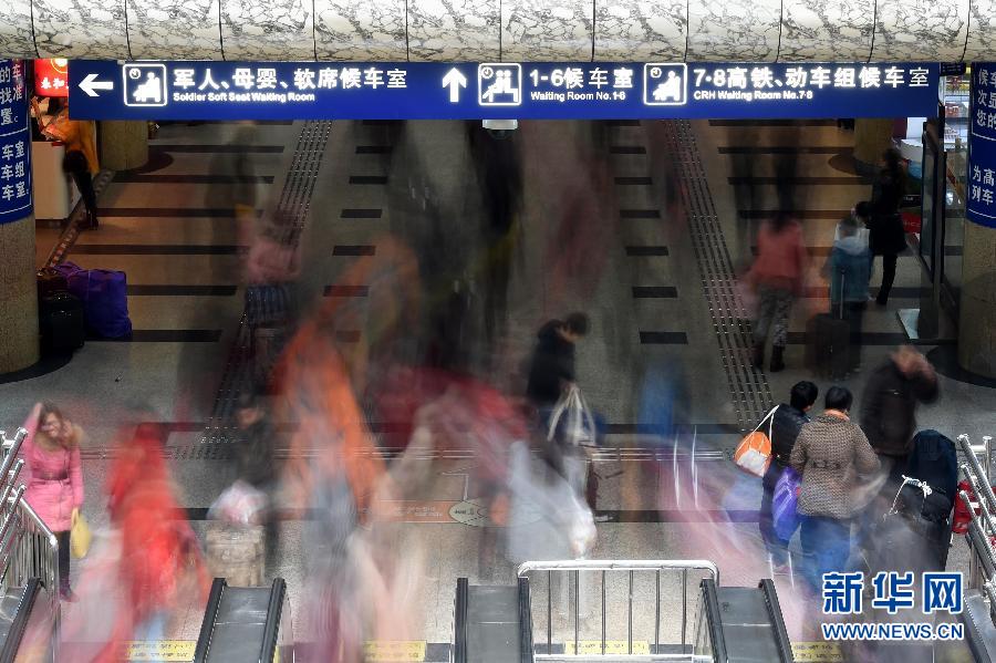 2月11日,旅客們在鄭州火車站準備進站上車。記者從交通部門獲悉,2015年春運自4日開啟以來已到一周,截至10日,全國道路運輸旅客突破4.2億人次,鐵路約4600萬人次,全國公路、鐵路、民航、水運運輸安全平穩有序。