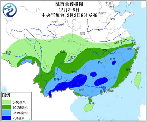 中央氣象臺預計,3日起,西藏東部、西南地區、華南、江南等地自西向東將有一次降水過程。云南東部、貴州南部、湖南、江西西部、廣西中北部等地有大雨,其中,湖南南部、廣西北部等地的部分地區有暴雨。對于云南來說,12月上旬出現如此強降雨較為少見,局地降雨量可能會打破12月上旬歷史紀錄。