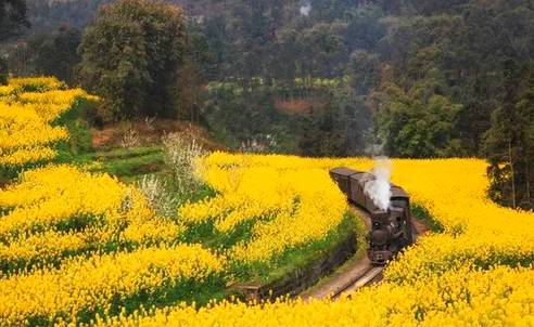 當然還不能忘了嘉陽小火車,它是目前世界上唯一的還在營運的蒸汽式小火車。在這里你可以乘坐老式的蒸汽火車穿梭在油菜花田,簡直美呆!