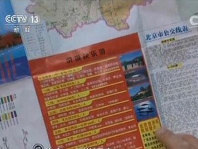 記者在調查中,通過詢問同行游客,發現其報名參團的途徑,主要分為街邊攬客人員推薦,和通過下榻酒店、火車站車站、故宮鳥巢等主要景點附近發放的小廣告電話預定兩種。不僅如此,一般售賣的北京地圖、交通圖等,也暗藏著非法一日游的玄機,甚至還出現臨時攬客上車的現象。