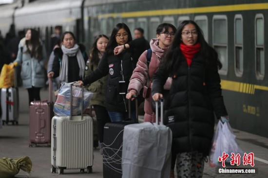 1月10日,大批旅客在南京火車站乘坐火車出行。春運臨近,大批外來務工人員和高校提前放假的學生為避開乘車高峰開始提前返鄉(xiāng),火車站、汽車站等交通窗口客流先涌。據(jù)悉,今年的春運將從1月13號起到2月21號,共40天,全國鐵路預計發(fā)送旅客3.56億人次。 中新社記者 泱波 攝