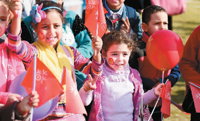 1月20日,在埃及首都開羅,小朋友們參加歡樂春節大廟會活動。