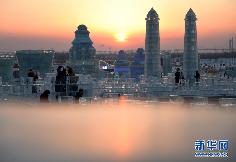 2月7日,游客在哈爾濱冰雪大世界園區(qū)游玩拍照。春節(jié)長假后,哈爾濱冰雪大世界依舊游人如織,流光溢彩的冰建筑、巧奪天工的冰雕作品和百玩不厭的冰雪娛樂活動,讓天南海北的游客流連忘返。新華社記者 王建威攝 -