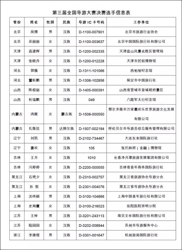 現將決賽選手名單進行公示,公示期為即日起至3月15日。如有異議,請于公示期內向國家旅游局反映。(伍策 一。