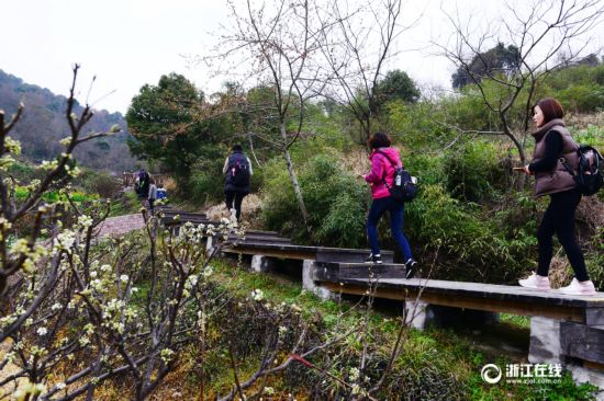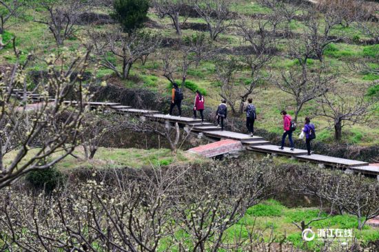 3月19日,喜歡踏青的游客在舟山市定海區金塘李子苑內賞花拍照。由于氣候影響,金塘島上的三千多畝李花仍在含苞欲放中,但賞花游客已經慕名而至。(浙江在線通訊員 姚峰 攝)