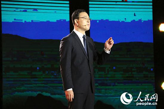 舞臺(tái)上舉著導(dǎo)游旗講解的劉凱。實(shí)習(xí)生王趙童 攝
