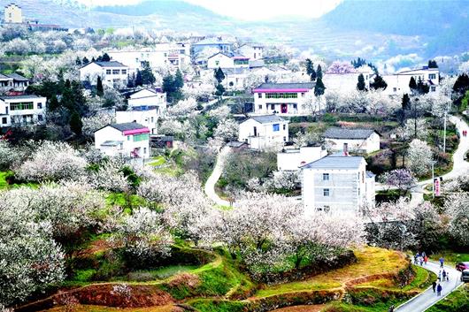 圖為:十堰市鄖陽區櫻桃溝村萬畝櫻桃花盛開,“雪景”壯觀妖嬈。(視界網楊顯有 攝)