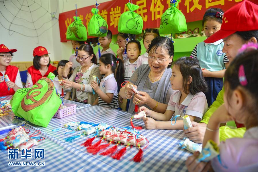 5月25日,合肥市包河區義城街道的志愿者在轄區一所農民工子弟幼兒園教小朋友縫制香包。 端午節前夕,安徽省合肥市包河區開展“關注留守兒童歡樂過端午”活動,志愿者教小朋友縫制香包,感受中國傳統文化,迎接端午節。 新華社發(李博 攝)