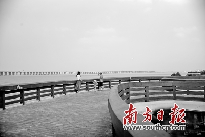 來西部看海,有哪些不同于大小梅沙的特色?記者來到不久前剛開放的西灣紅樹林公園。不同于東部大小梅沙的碧海藍天和金色沙灘,在這里的海岸看到的是灘涂、樹木以及遠山和島嶼。公園設計上也不同于東部的亞熱帶風情,而采用了嶺南風格和歷史文化元素。南昌涌出海口設計的步云橋,連接兩岸復原的固戍碼頭,讓人感受到昔日西鄉商貿文化的輝煌,沿著步云橋往北,仿佛穿越歷史的煙云,看到固戍碉樓挺立于時空之中。由于公園靠近寶安機場,不時能看到飛機從沿江高速上飛過,還有高鐵從頭頂呼嘯而過,這些都成了公園的獨特景致。